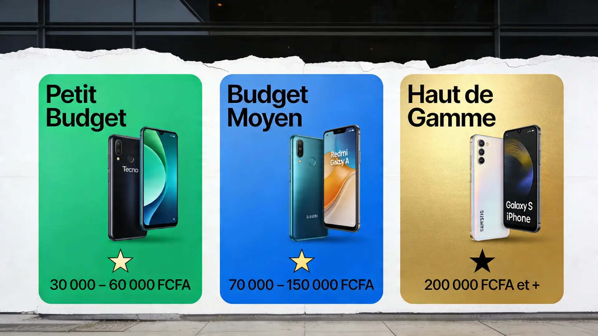 Au Cameroun, on peut souvent classer les smartphones en trois grandes catégories. Les modèles à petit budget conviennent aux usages simples. Les téléphones de milieu de gamme offrent généralement le meilleur rapport qualité-prix. Les modèles plus haut de gamme, eux, s’adressent à ceux qui veulent plus de puissance, une meilleure photo et une meilleure longévité.