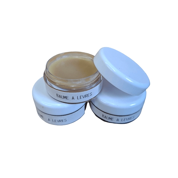Baume à lèvres artisanal au beurre de karité, poudre de cacao et huile essentielle de thym.
