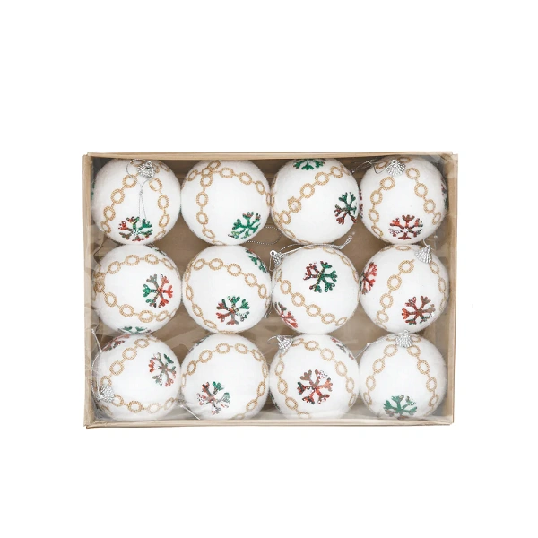 couleur blanc cassé ou crème, ornées de motifs de flocons de