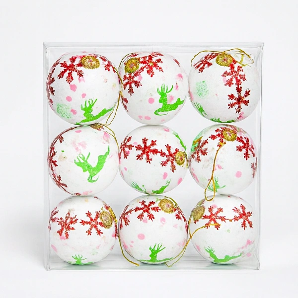 - Forme et Couleur de Base : Les décorations sont des sphères