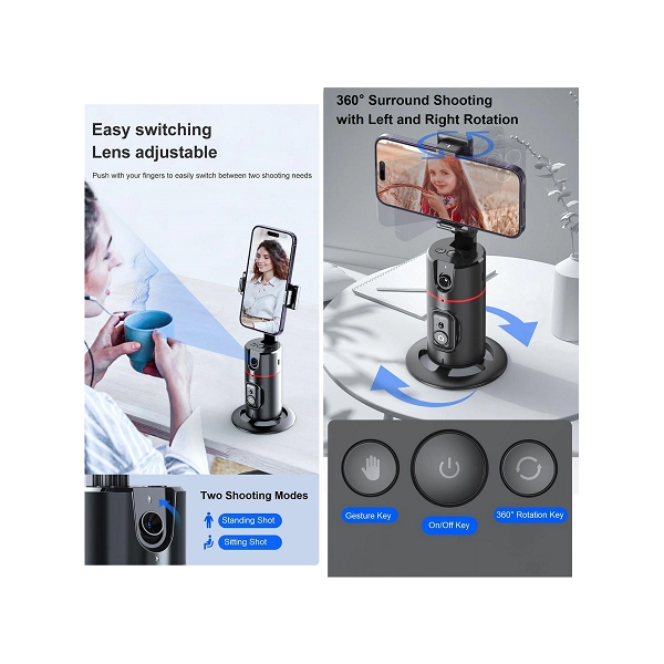 Caméra de Suivi de Visage Automatique P02 360° | Support Smartphone Intelligent pour Vlog, Live & TikTok