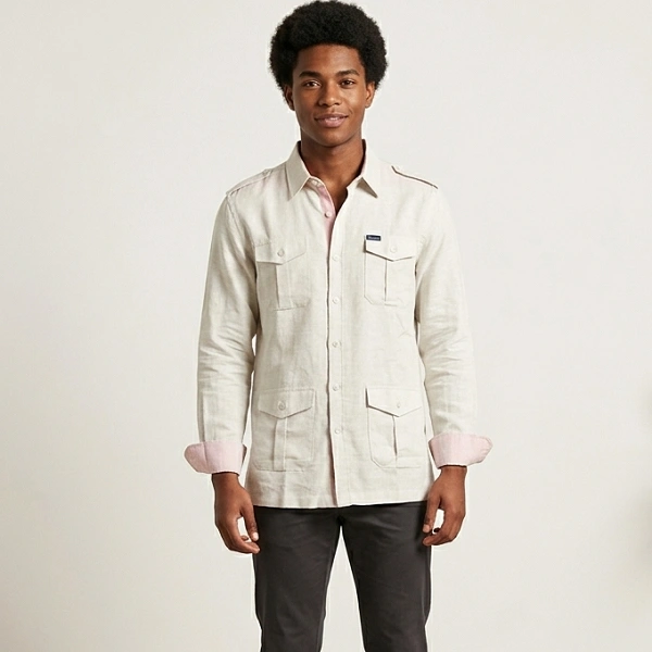 Chemise en lin à quatre poches – Disponible à Douala et Yaoundé