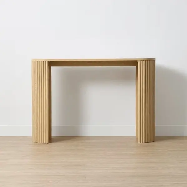 Grâce à ses pieds en colonnes semi-circulaires, cette console offre une excellente stabilité. De plus, le motif côtelé vertical renforce son caractère distinctif. Par conséquent, elle devient un véritable élément décoratif, tout en restant un meuble fonctionnel au quotidien.