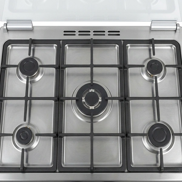 La cuisinière permet de cuisiner plusieurs plats en simultané grâce à ses 5 foyers. L’allumage automatique simplifie l’allumage et réduit les risques d’accident. Le four est idéal pour rôtir, gratiner ou cuire, et son éclairage intérieur permet un suivi facile de vos préparations. Son inox moderne s’adapte à toutes les cuisines et assure un nettoyage rapide.