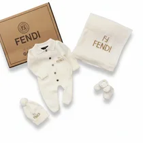 Ensemble Naissance Fendi en Coton Doux avec Accessoires Assortis