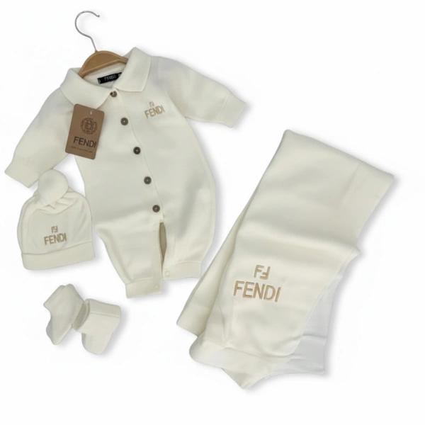 Ensemble Naissance Fendi en Coton Doux avec Accessoires Assortis