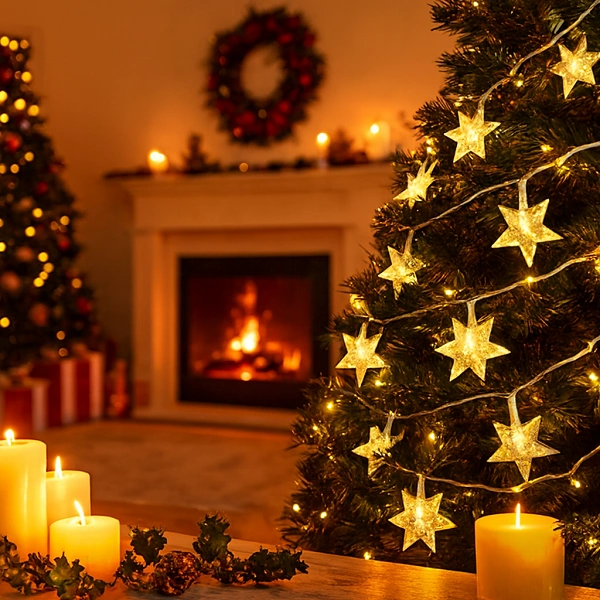 La Guirlandes lumineuses LED en forme d’étoiles à cinq branches est une décoration de Noël en forme d’étoile à cinq branches