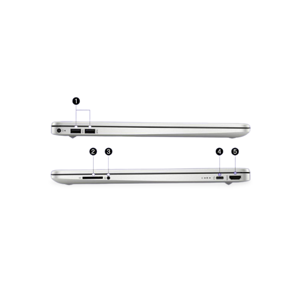 Enfin, la connectivité est un point fort de ce modèle. Le HP 15s est équipé de plusieurs ports essentiels pour tous vos besoins, notamment des ports USB Type-A et un port USB Type-C, un port HDMI pour connecter un moniteur externe, et un lecteur de carte SD.