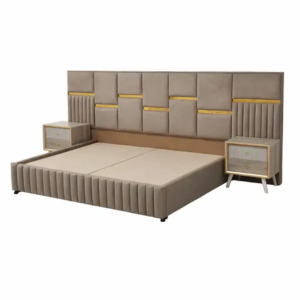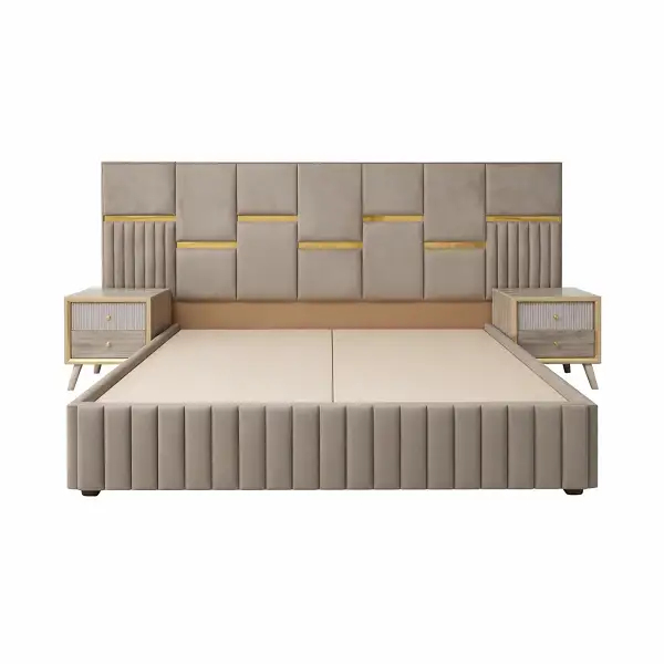Il combine esthétique contemporaine, matériaux premium et finitions dorées pour offrir une expérience de couchage haut de gamme. De plus, il est livré avec des tables de chevet assorties pour une harmonie parfaite.