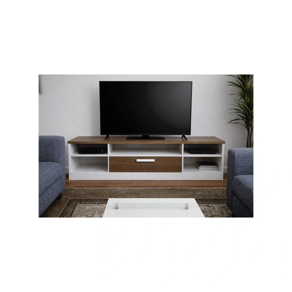 Ensuite, sa conception fonctionnelle répond aux besoins quotidiens des utilisateurs. En effet, les étagères ouvertes sont idéales pour accueillir des appareils multimédias tels que décodeur, lecteur DVD, console de jeux ou box Internet. Grâce à cet agencement, l’accès aux équipements reste simple et rapide, tout en favorisant une bonne ventilation.