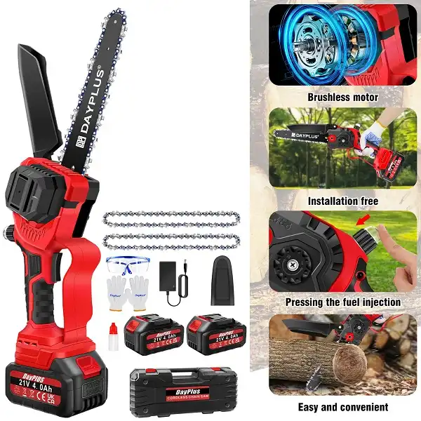 Mini Tronçonneuse Sans Fil DAYPLUS 8 Pouces – Prix Cameroun | Batterie 4.0Ah, Puissante et Portable