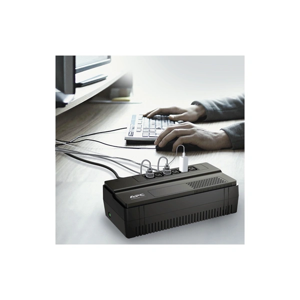Par ailleurs, l’APC Easy UPS 650 VA est doté de 6 prises de sortie, ce qui facilite le branchement simultané de plusieurs appareils. Cette caractéristique le rend particulièrement pratique dans les bureaux, les espaces de télétravail ou les petites installations informatiques. En outre, son fonctionnement silencieux et son format compact lui permettent de s’intégrer facilement dans n’importe quel environnement sans encombrement.