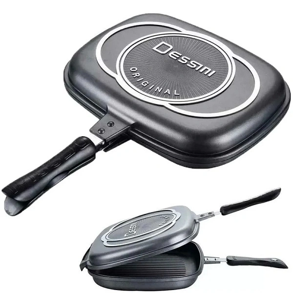 Découvrez la révolution dans votre cuisine avec la poêle double face Dessini en aluminium moulé sous pression. Conçue pour griller, rôtir et frire vos aliments de manière homogène, elle permet de retourner vos préparations en un geste sans perdre de chaleur ni salir votre cuisinière. Idéale pour des viandes juteuses, des poissons grillés et des omelettes parfaites.