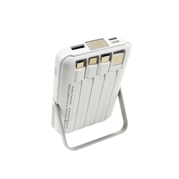 Le design est également optimisé pour l’utilisateur mobile. Tout d’abord, le boîtier blanc est épuré et facile à transporter. Ensuite, il intègre un support pliable pratique. C’est pourquoi vous pouvez charger votre téléphone en mode paysage tout en regardant une vidéo ou en participant à une visioconférence, transformant votre Power Bank en un support mains libres.