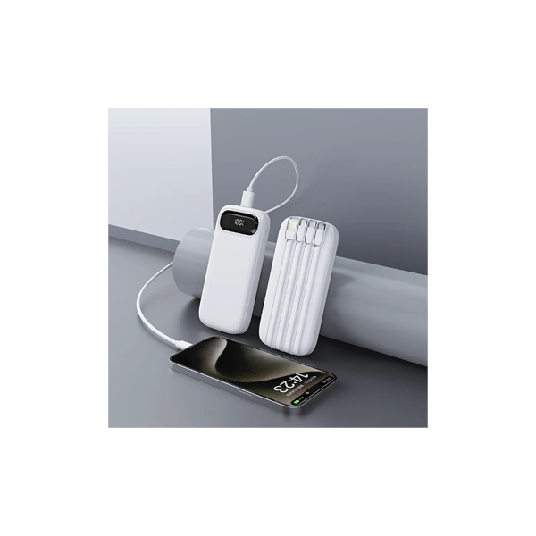 La Power Bank Depin 10000 mAh sert principalement à recharger vos appareils électroniques en l’absence de source électrique. Il suffit de connecter directement l’appareil à l’un des câbles intégrés, puis d’appuyer sur le bouton d’alimentation. Grâce à sa charge rapide, elle alimente efficacement smartphones, écouteurs sans fil et autres appareils USB, que ce soit au bureau, en voyage ou à domicile.