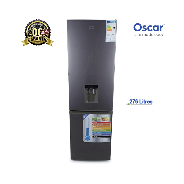 Réfrigérateur Oscar 276L OSC-R375D A+ Gris avec Distributeur d’Eau – Grande Capacité – Garantie 6 Mois