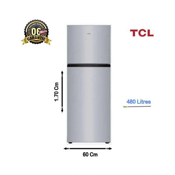 Réfrigérateur TCL Top Mount 480L Dark Silver – REF-F480TM avec Congélateur Haut | Garantie 6 Mois