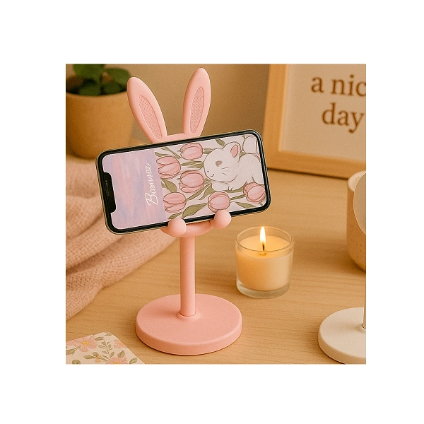 Support de Téléphone Bureau en forme de Lapin Kawaii | Réglable, Stable & Décoratif Rose