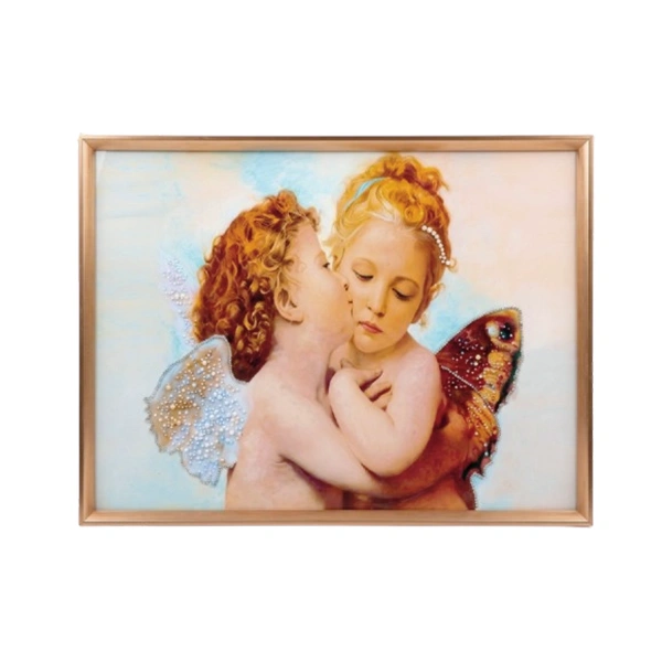 Ce tableau met en scène deux enfants anges dans une posture affectueuse. En effet, les couleurs douces et les détails raffinés créent une atmosphère paisible.