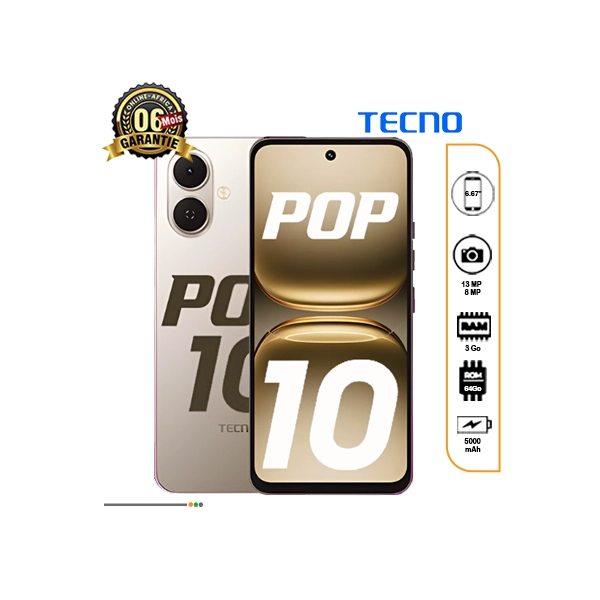 Le Tecno Pop 10 se positionne comme un smartphone incontournable pour ceux qui recherchent un appareil performant, polyvalent et accessible. Conçu pour le divertissement et la productivité, il allie des caractéristiques techniques solides à un design moderne. Il ne s’agit pas seulement d’un téléphone, mais d’un véritable compagnon digital qui répond à tous vos besoins quotidiens, sans compromis.