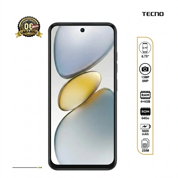 Le Tecno Pop 20 64/128GB offre performance et autonomie à prix accessible. Grâce à ses 4GB RAM extensibles à 8GB, son écran 6.75″ immersif et sa batterie 5000mAh longue durée, il garantit une utilisation fluide au quotidien. Double SIM, caméra 13MP et stockage généreux complètent ce smartphone fiable et pratique.
