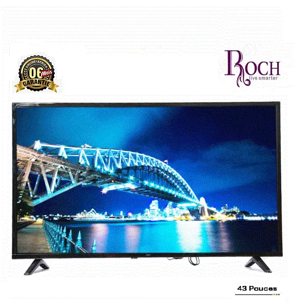 TV LED Numérique Roch 43 Pouces – Haute Définition – Tuner Intégré + Support Mural Offert – Garantie 6 Mois