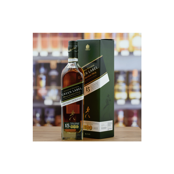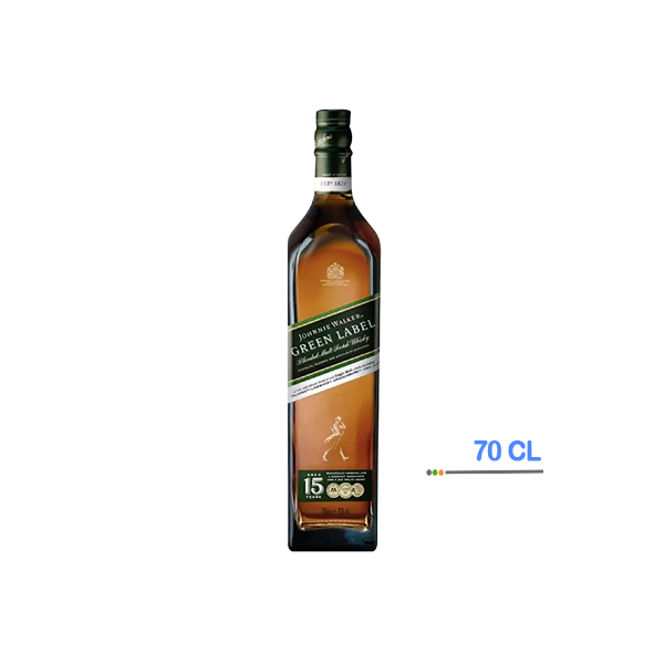 Whisky Johnnie Walker Green Label 15 ans – Blended Malt Scotch Whisky 70cl | Arômes tourbés, boisés et fruités, équilibre et complexité.